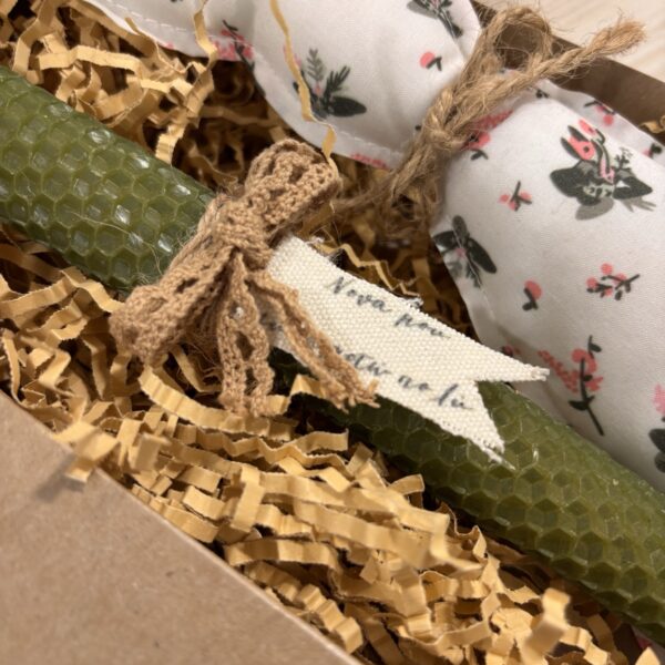 Πασχαλινό Σετ Δώρου με Λαμπάδα από Μελισσοκέρι & Χειροποίητο Υφασμάτινο για Νονά