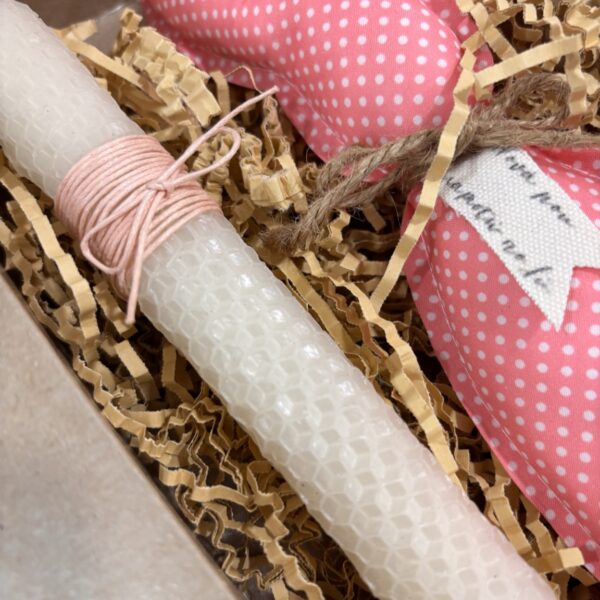 Πασχαλινό Σετ Δώρου με Λαμπάδα από Μελισσοκέρι & Χειροποίητο Υφασμάτινο για Νονά Ροζ