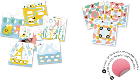 Τα πρώτα μου αυτοκόλλητα – Ψαράκια, βάτραχοι, πάπιες, γερανοί, λιβελούλες: ένας ολόκληρος κόσμος για να ανακαλύψετε! Αυτή η δραστηριότητα με αυτοκόλλητα έχει σχεδιαστεί για μικρά παιδιά από 2 ετών.