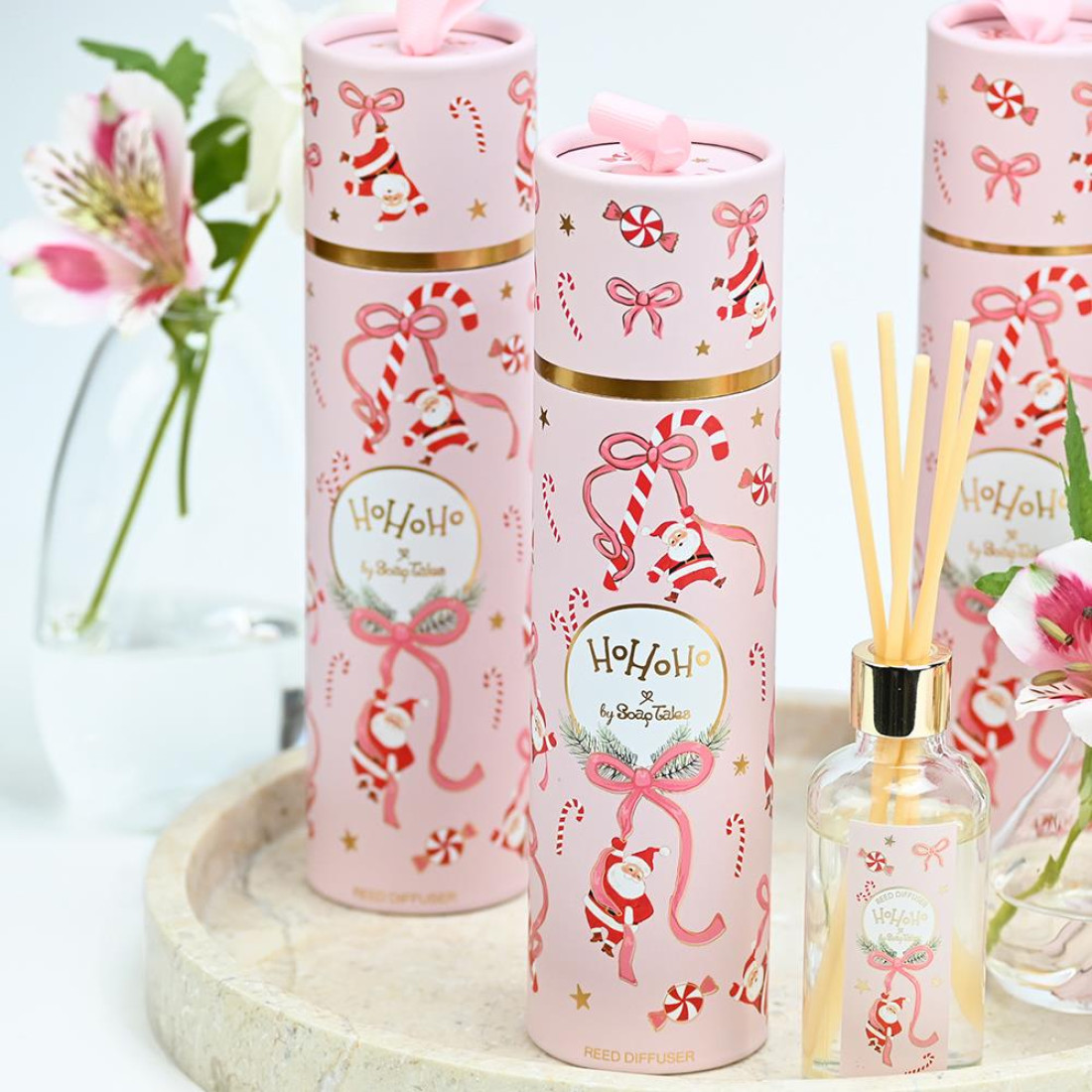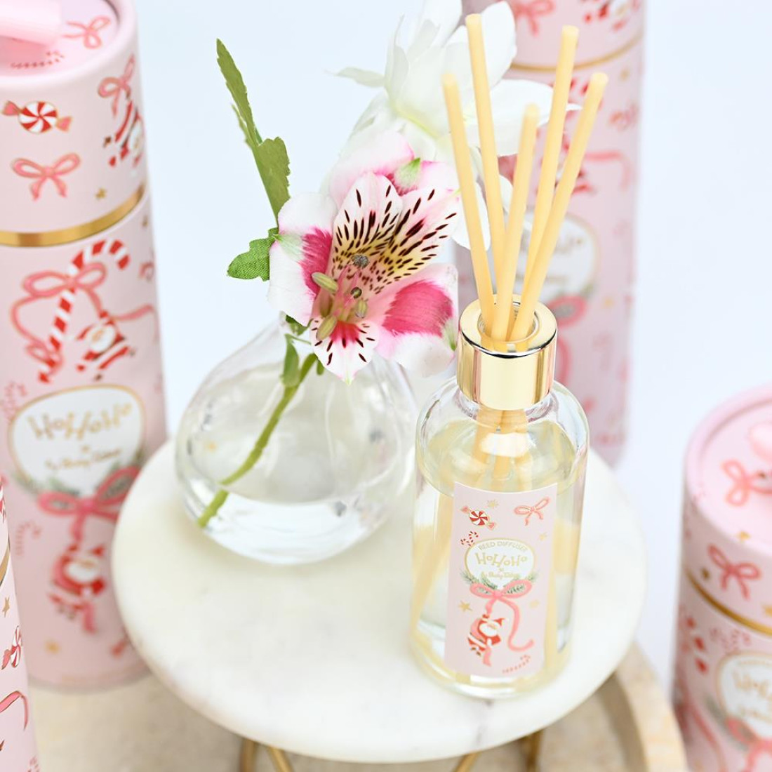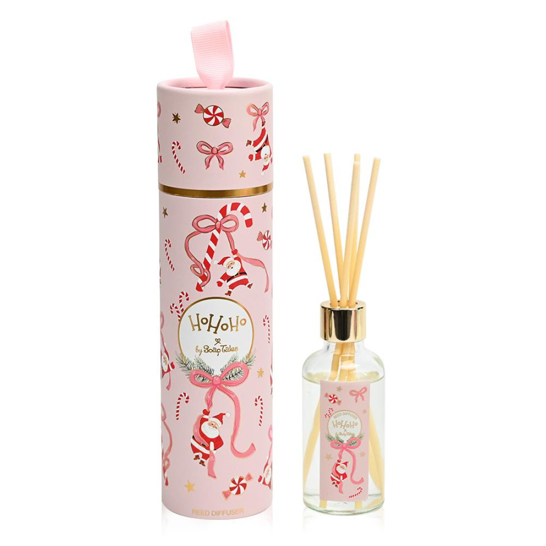 Ένα γιορτινό αρωματικό χώρου που αποπνέει χαρά και παιχνιδιάρικη διάθεση. Η ροζ συσκευασία με φιόγκους, γιορτινά ζαχαρωτά, αστέρια και τον Άγιο Βασίλη γεμίζει τον χώρο με χρώμα και ζωντάνια, ενώ οι χρυσές πινελιές χαρίζουν κομψότητα και λάμψη.