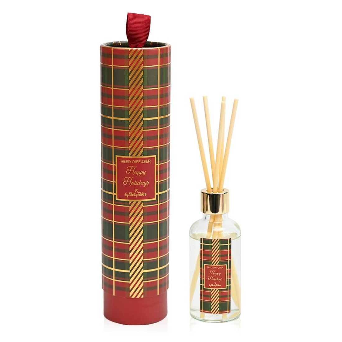 Το αρωματικό χώρου με καρό σχέδιο συνδυάζει την κλασική χριστουγεννιάτικη αισθητική με μοντέρνα κομψότητα.
