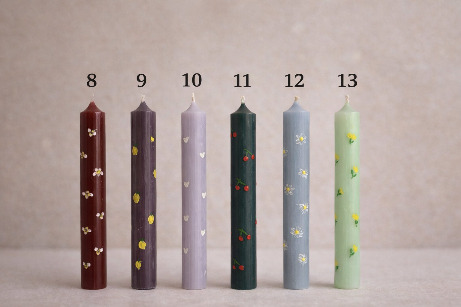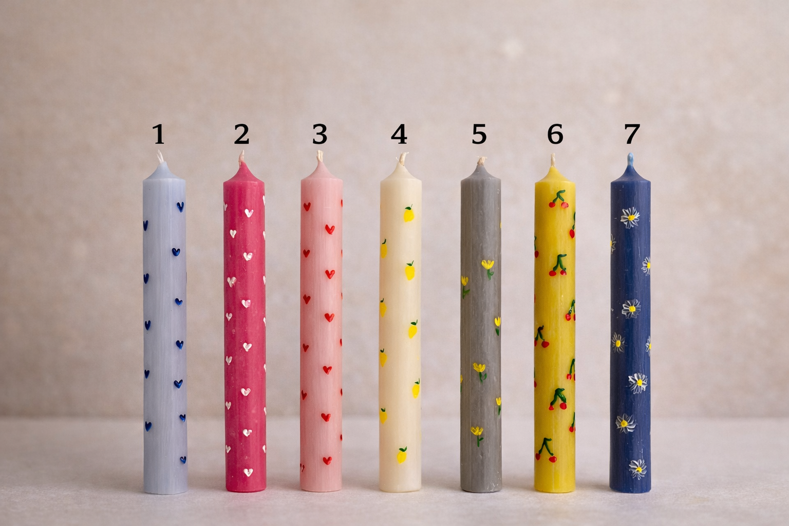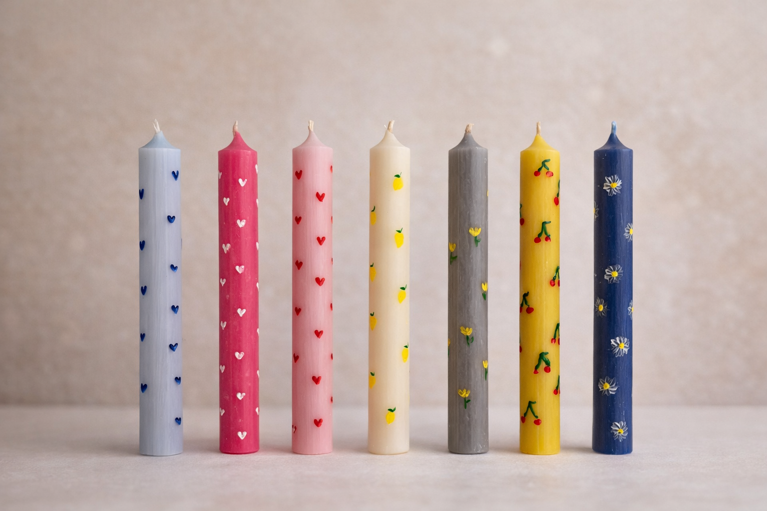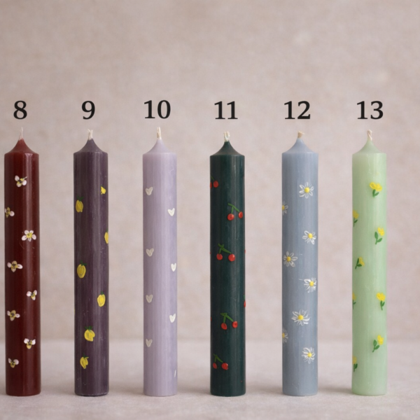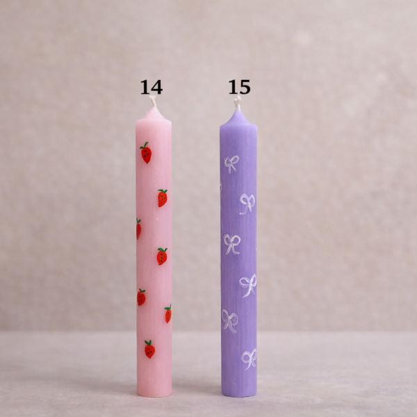 Κάθε λαμπάδα διακοσμείται με προσεγμένες λεπτομέρειες όπως καρδιές, φρούτα, λουλούδια και άλλα χαριτωμένα σχέδια που την κάνουν ξεχωριστή και μοναδική.