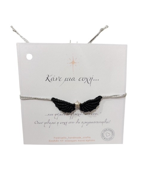 Χειροποίητο βραχιόλι μακραμέ με φτερά και αστέρι στο κέντρο. Ρυθμιζόμενο μέγεθος, ιδανικό για δώρο και καθημερινή χρήση.
