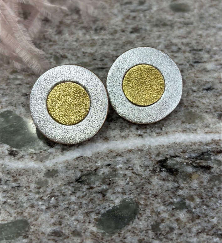 Χειροποίητα σκουλαρίκια κύκλοι κατασκευασμένα από γνήσιο δέρμα.
