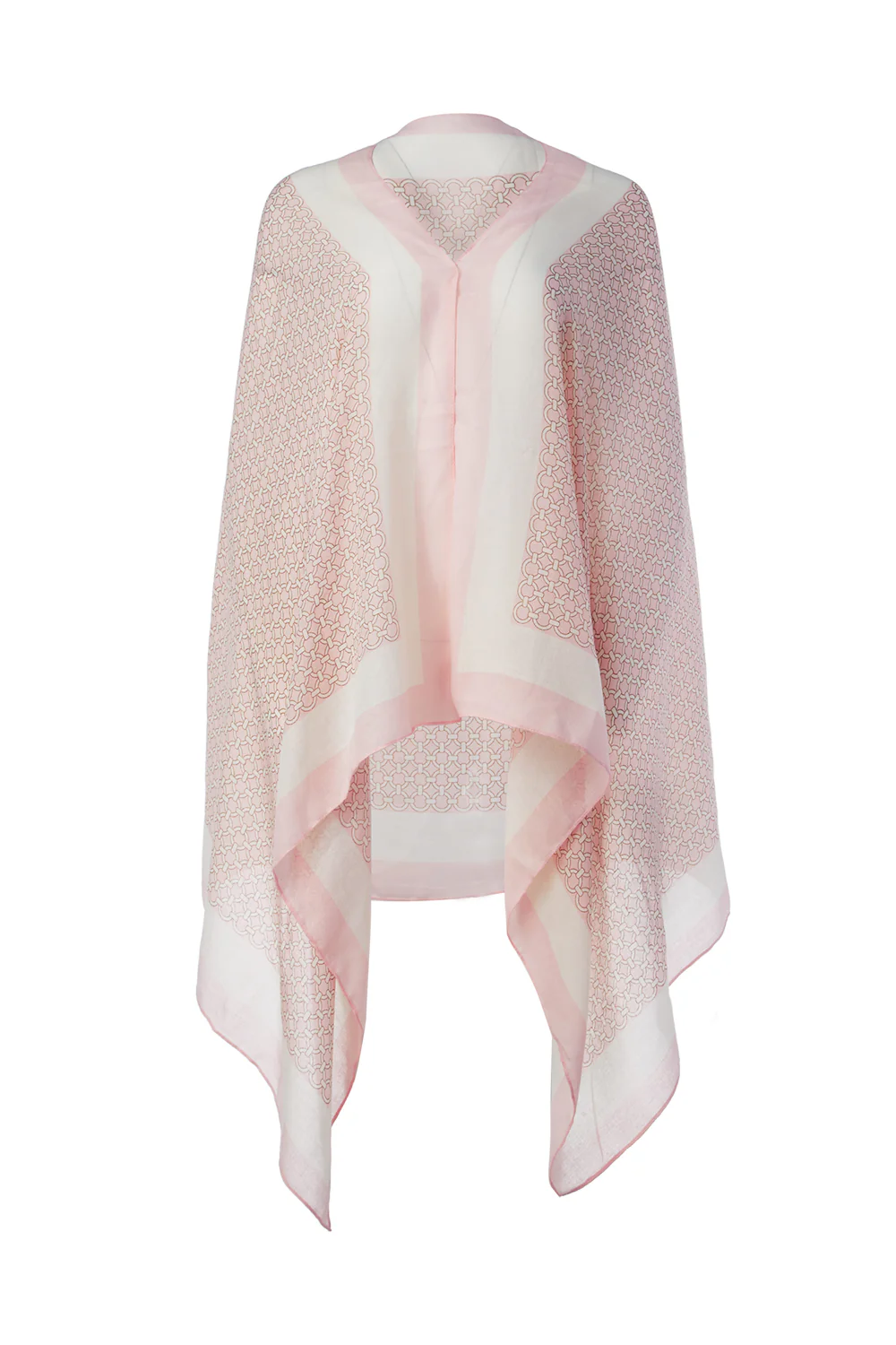 Λεπτή εμπριμέ εσάρπα-παρεό σε ροζ απόχρωση με μαλακή ύφανση, ιδανική για παραλία ή για έξοδο ως εσάρπα.