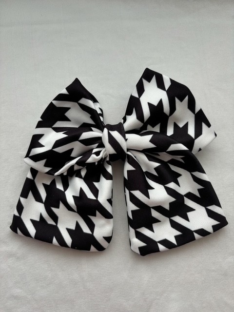 Ο μεγάλος φιόγκος μαλλιών σε μαύρο-λευκό καρό σχέδιο προσθέτει κομψότητα και παιχνιδιάρικη διάθεση σε κάθε look.
