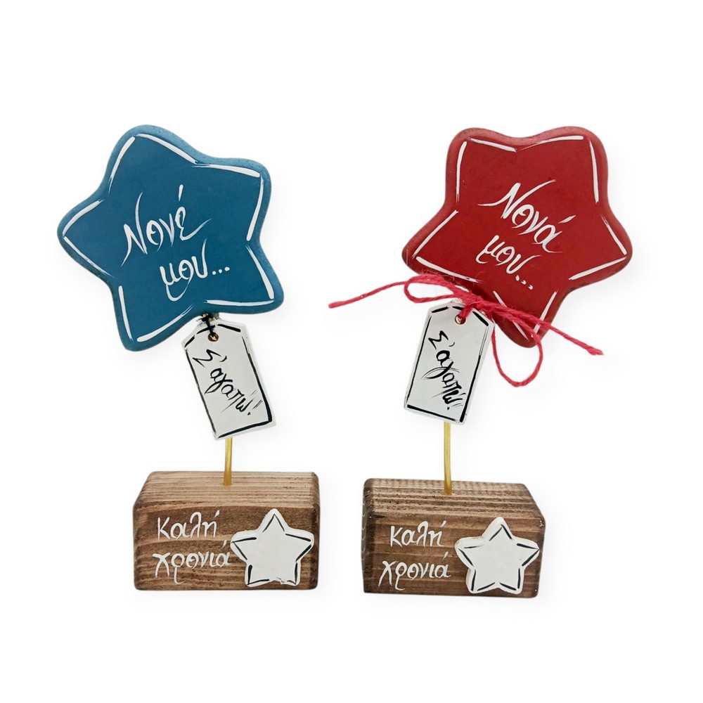 Γούρι Ξύλινο Αστεράκι 2026 «Νονά μου» ή «Νονέ μου» με βάση