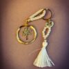 Γούρι καραβάκι σε εντυπωσιακή χρυσή απόχρωση, διακοσμημένο με αλυσίδα από πέρλα, λευκή φούντα και μεταλλικό στοιχείο “2026”.