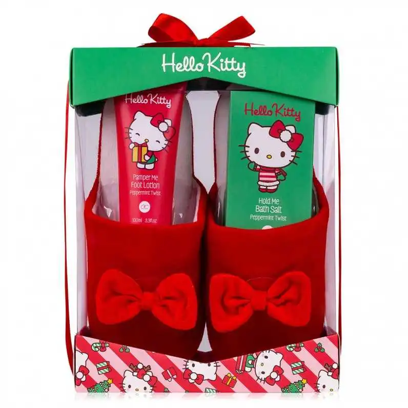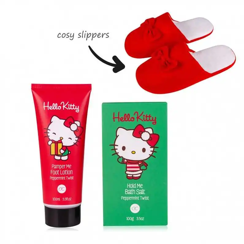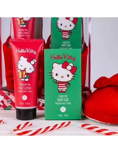 Χριστουγεννιάτικο σετ με 100g άλατα μπάνιου, 100ml λοσιόν ποδιών & παντόφλες, Hello Kitty