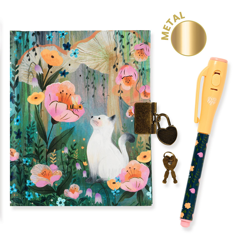 Η σειρά ημερολογίων από την εταιρία Djeco ήρθε για να κρατήσει ασφαλή τα μυστικά μικρών και μεγάλων. Εκτός από το όμορφα εικονογραφημένο ημερολόγιο με 88 σελίδες (120 gsm), στη συσκευασία περιλαμβάνεται μία κλειδαριά με δύο κλειδιά και ένα στυλό με αόρατο μελάνι, που εμφανίζεται μόνο όταν χρησιμοποιήσουμε τον φακό στο πάνω μέρος του. Προϊόν από υλικό πιστοποιημένο με FSC Mix (μείγμα υλικών από δάση πιστοποιημένα με FSC, ανακυκλωμένα υλικά ή / και ξύλο ελεγχόμενο από FSC).