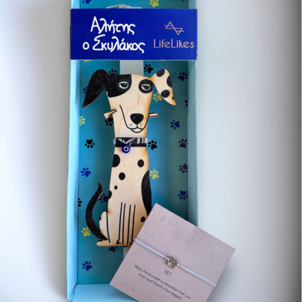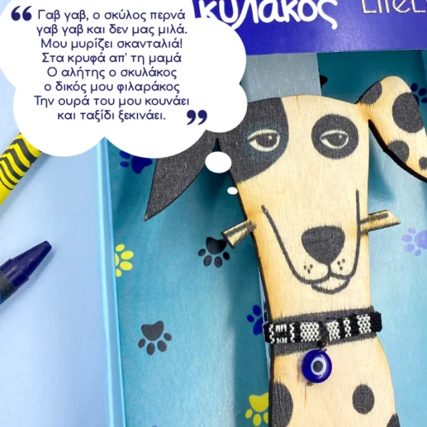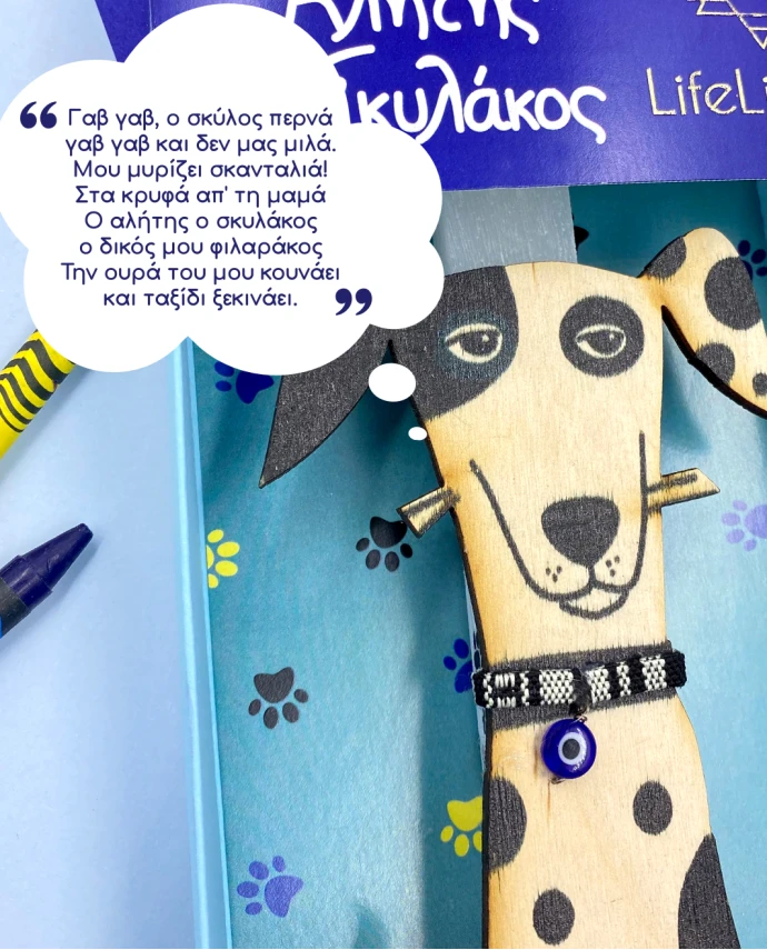 Για το αγαπημένο σου βαφτιστήρι που του αρέσουν τα παιχνιδιάρικα σκυλάκια, ο Αλήτης ο Σκυλάκος, είναι η ιδανική λαμπάδα. Αποτελείται από λευκό κερί, με τον χαριτωμένο σκυλάκο να τη διακοσμεί, ο οποίος στη συνέχεια μπορεί να ξεκρεμαστεί και να κολληθεί οπουδήποτε επιθυμούν τα παιδιά, μιας και είναι μαγνητάκι. Η λαμπάδα “φιλοξενείται” μέσα σε υπέροχη συσκευασία δώρου, εικονογραφημένη με χρωματιστά πατουσάκια, έτοιμη να τη δωρίσεις στα αγαπημένα σου βαφτιστήρια. Και στο πίσω μέρος της λαμπάδας, ένα μικρό ποιημάτακι, για όλα τα παιδάκια: “Γαβ γαβ, ο σκύλος περνά γαβ γαβ και δεν μας μιλά Μου μυρίζει σκανταλιά Στα κρυφά απ’ τη μαμά Ο αλήτης ο σκυλάκος ο δικός μου φιλαράκος Την ουρά του μου κουνάει και ταξίδι ξεκινάει”