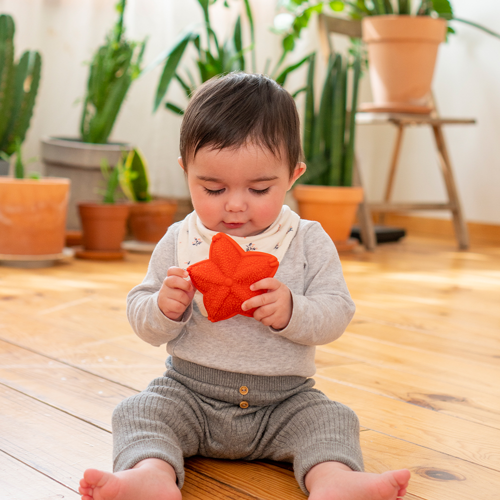 Είναι κατάλληλο από τη γέννηση και μπορεί να χρησιμοποιηθεί ως παιχνίδι οδοντοφυΐας, μπάνιου και ανακάλυψης μαζί, χάρη στις διαφορετικές υφές που διαθέτει και τα έντονα χρώματα που διεγείρουν τις αισθήσεις των βρεφών. Είναι μαλακό, ελαφρύ, με εύκολο κράτημα και ασφαλές στο μάσημα.