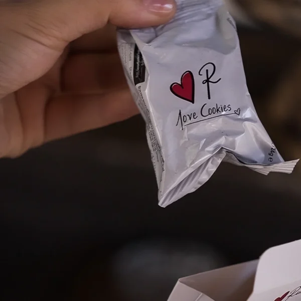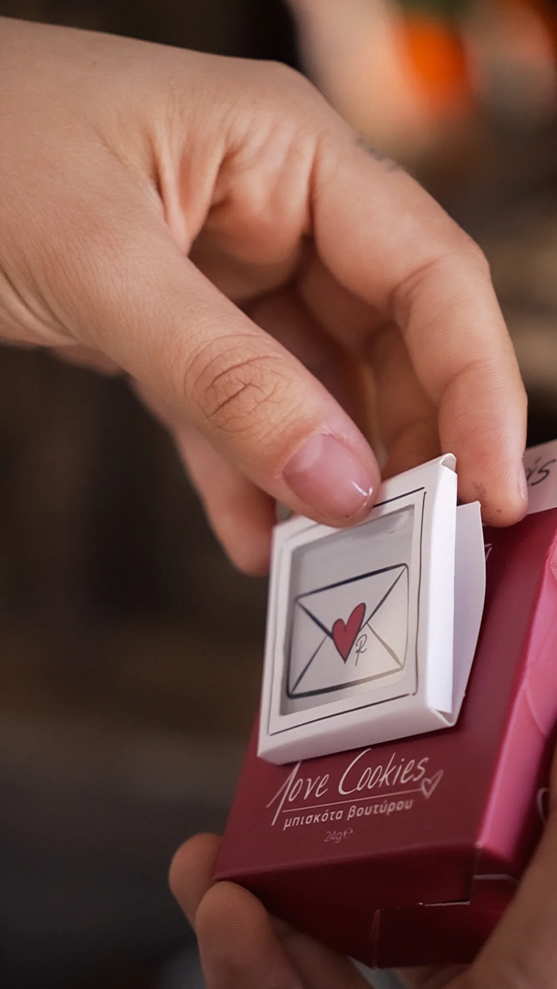Κάθε κουτί περιλαμβάνει 3 μπισκότα, ένα τρυφερό σημείωμα και ένα διακοσμητικό μαγνητάκι.