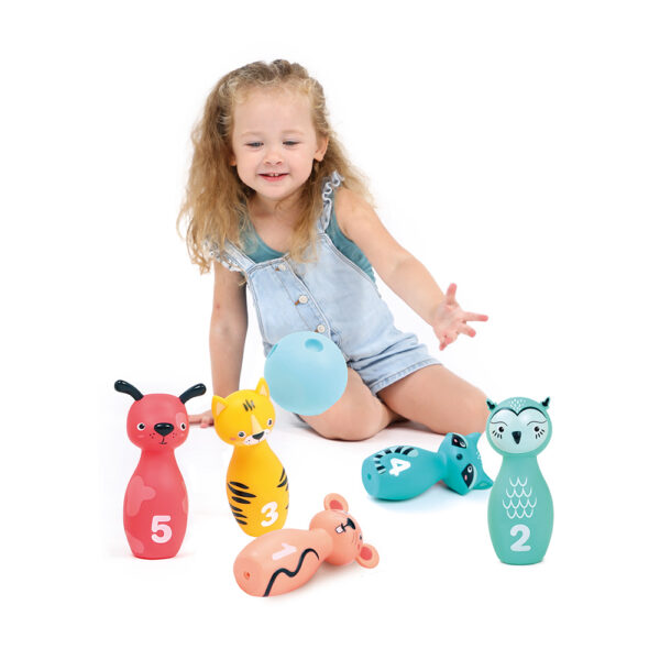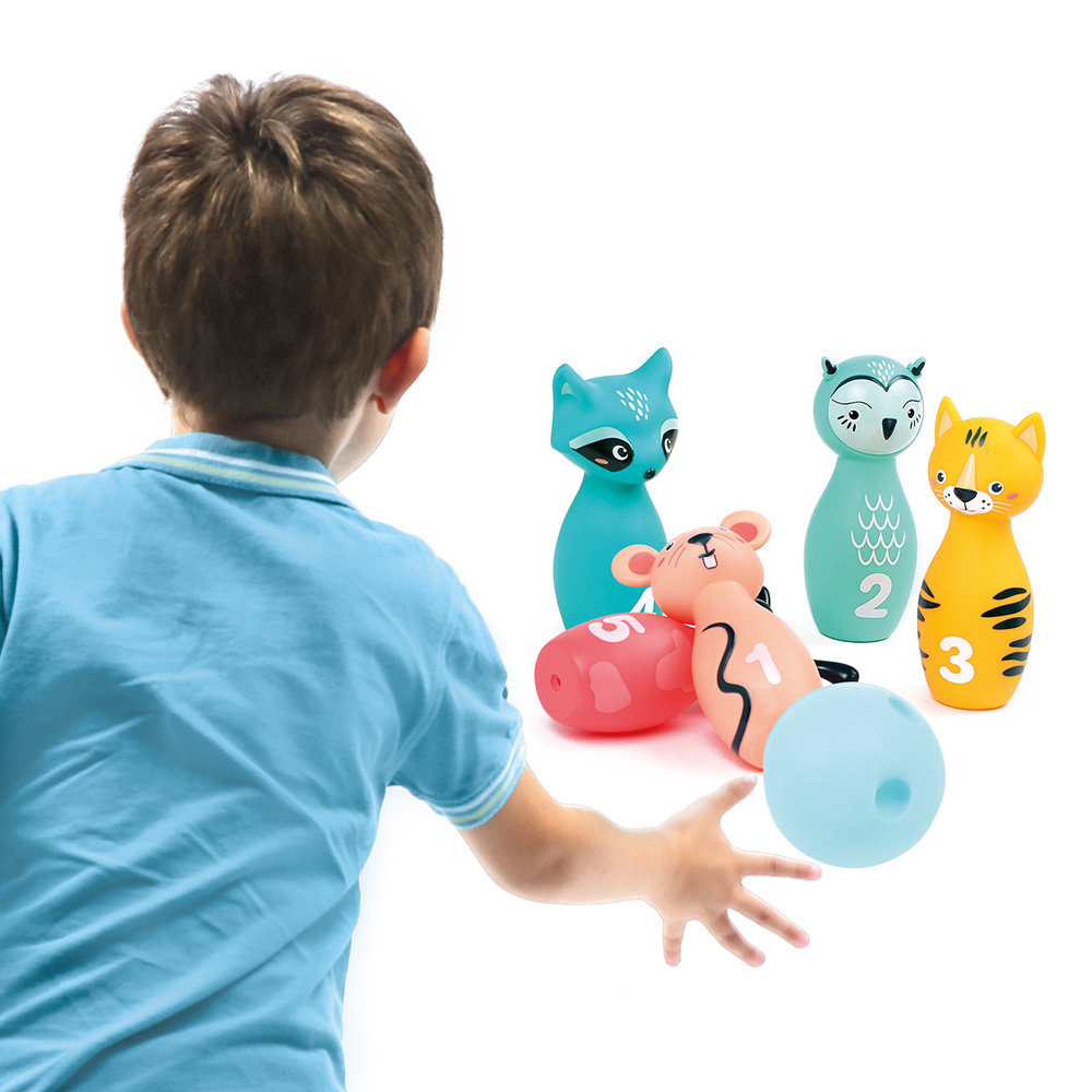 Ένα σούπερ διασκεδαστικό παιχνίδι εσωτερικού και εξωτερικού χώρου από την εταιρεία Ludi, που θα ενθουσιάσει τους μικρούς μας φίλους! Το κλασικό παιχνίδι του μπόουλινγκ, ειδικά σχεδιασμένο για μικρά χεράκια. Η συσκευασία διαθέτει πέντε κορίνες-ζωάκια από μαλακό πλαστικό, με ευχάριστη υφή και εύκολο κράτημα για το παιδί και μία μπαλίτσα. Θα καταφέρει να ρίξει την μπάλα και να πέσουν οι κορίνες κάτω; Σίγουρα θα διασκεδάσει πολύ, εξασκώντας την λεπτή και αδρή κινητικότητά του ενώ θα καλλιεργήσει και τη συγκέντρωσή του! Κατάλληλο από 10 μηνών και άνω.