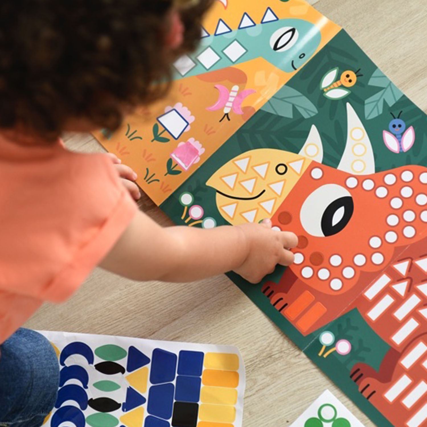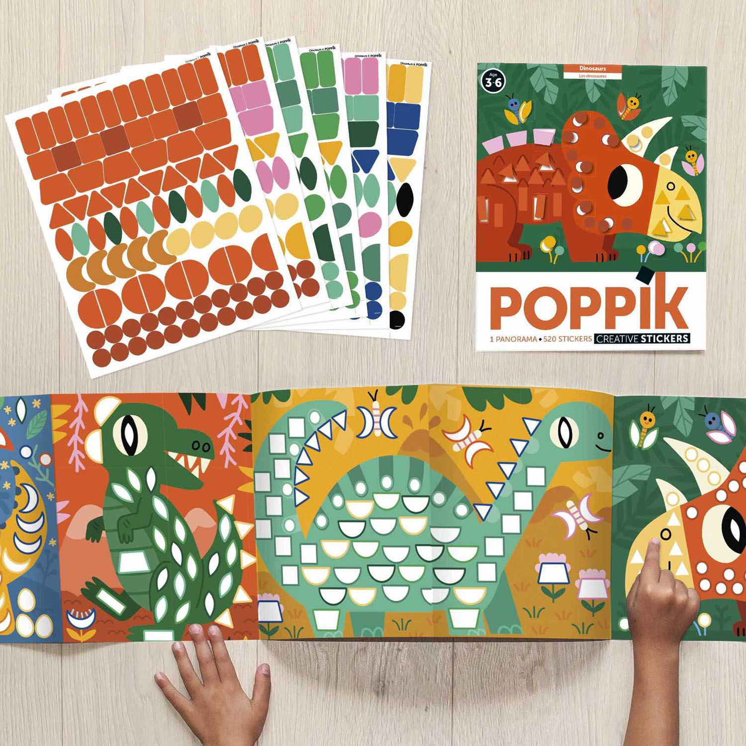 Ένα μεγάλο πόστερ και 520 μοναδικά αυτοκόλλητα από τη γαλλική εταιρεία Poppik που εικονίζει δεινόσαυρους! Το παιδί καλείται να κολλήσει τα αυτοκόλλητα στο μεγάλο πανόραμα: συμπληρώνει τα κενά σημεία ακολουθώντας τα χρώματα που του υποδεικνύονται και σιγά-σιγά όμορφες εικόνες με πολλούς δεινόσαυρους. Μόλις ολοκληρωθεί θα σχηματιστεί μια μεγάλη αφίσα με πολύχρωμα αυτοκόλλητα που θα γίνει η καλύτερη και πιο πολύχρωμη διακόσμηση για δωμάτιο τους!