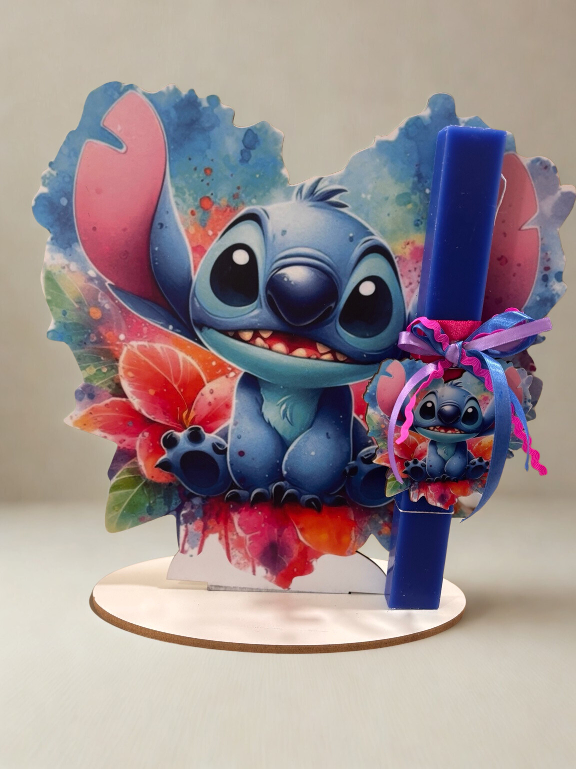 Παιδική Πασχαλινή Λαμπάδα με ξύλινη επιτραπέζια διακοσμητική βάση – Stitch