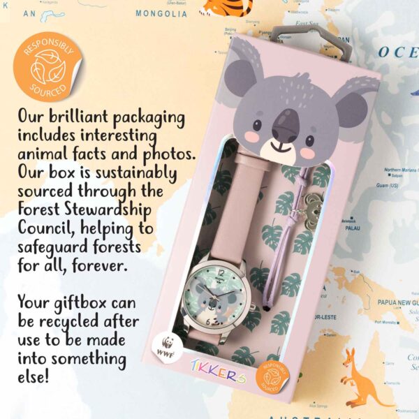 Η Tikkers είναι περήφανη που συνεργάζεται με τη WWF σε αυτήν τη συλλογή ρολογιών. Η συλλογή έχει σχεδιαστεί για να απευθύνεται στους νεαρούς λάτρεις των ζώων, ενώ η αγορά τους έχει θετικό αντίκτυπο στο περιβάλλον.
