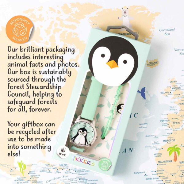 Η Tikkers είναι περήφανη που συνεργάζεται με τη WWF σε αυτήν τη συλλογή ρολογιών. Η συλλογή έχει σχεδιαστεί για να απευθύνεται στους νεαρούς λάτρεις των ζώων, ενώ η αγορά τους έχει θετικό αντίκτυπο στο περιβάλλον.