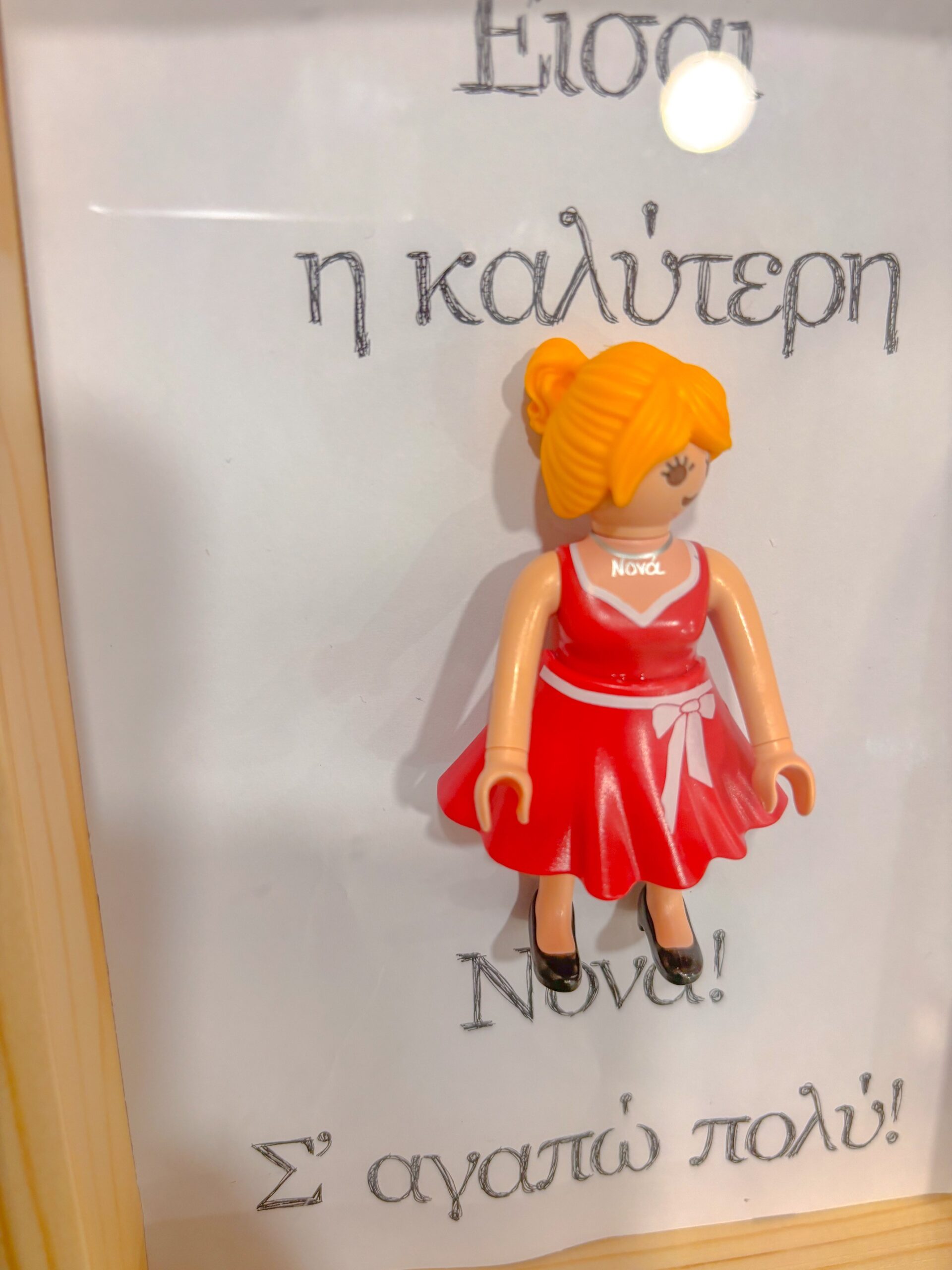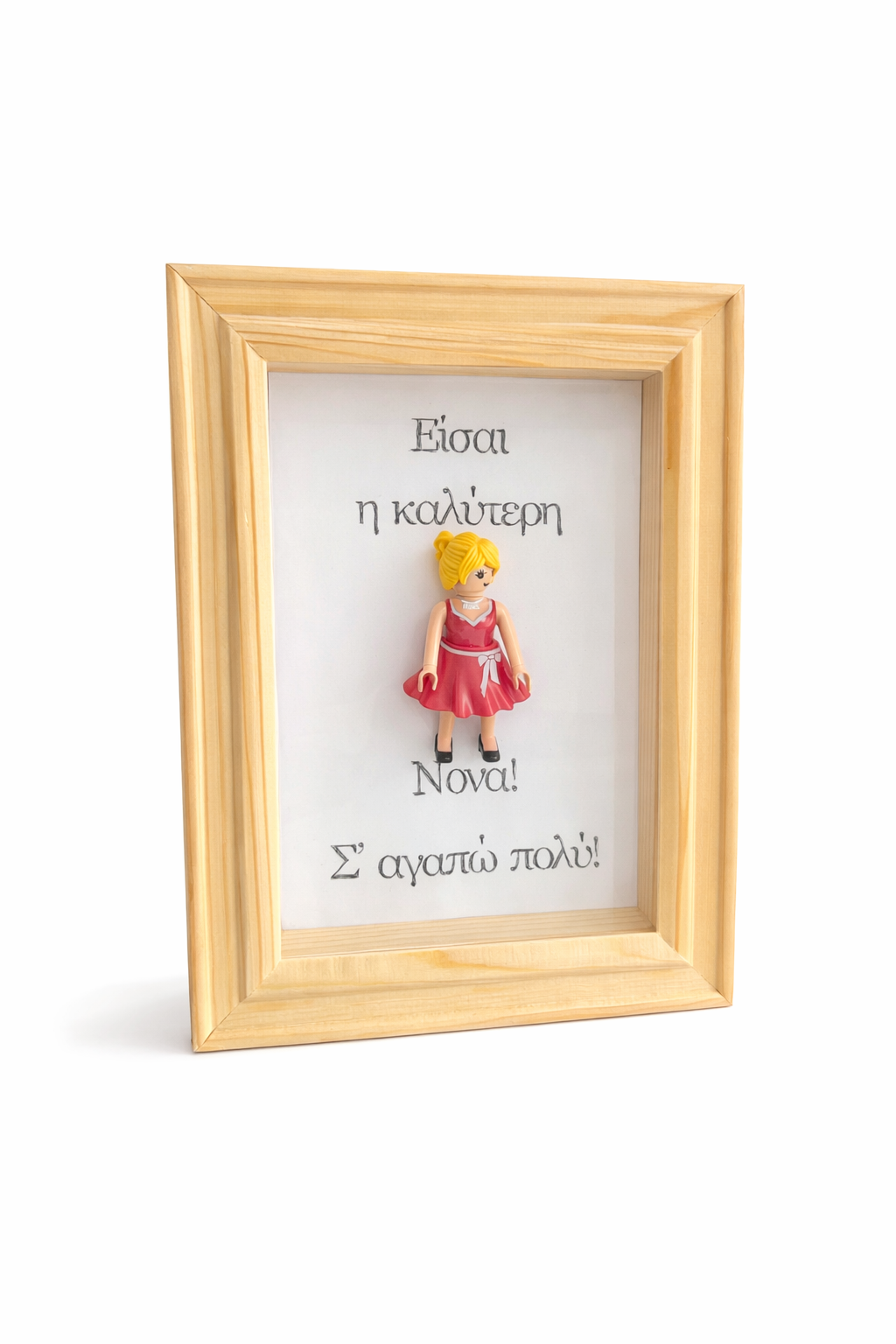 Χειροποίητο διακοσμητικό κάδρο με φιγούρα Playmobil και μήνυμα για τη Νονά