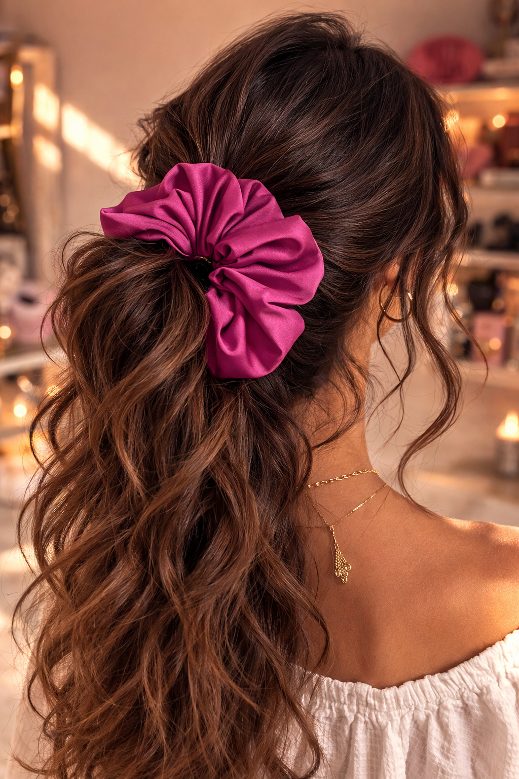 Χειροποίητο σατέν scrunchie XXL σε μαγευτική dark magenta απόχρωση, ιδανικό για ponytail, bun ή half-up look.
