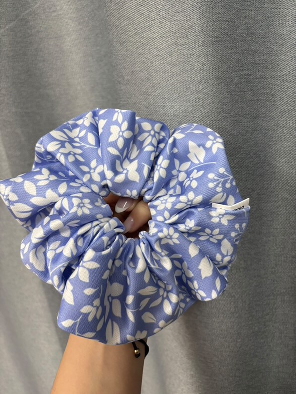 Το scrunchie μπλε με λευκά λουλούδια χαρίζει φρεσκάδα και κομψότητα σε κάθε χτένισμα. Το ύφασμά του είναι ανάλαφρο και άνετο.