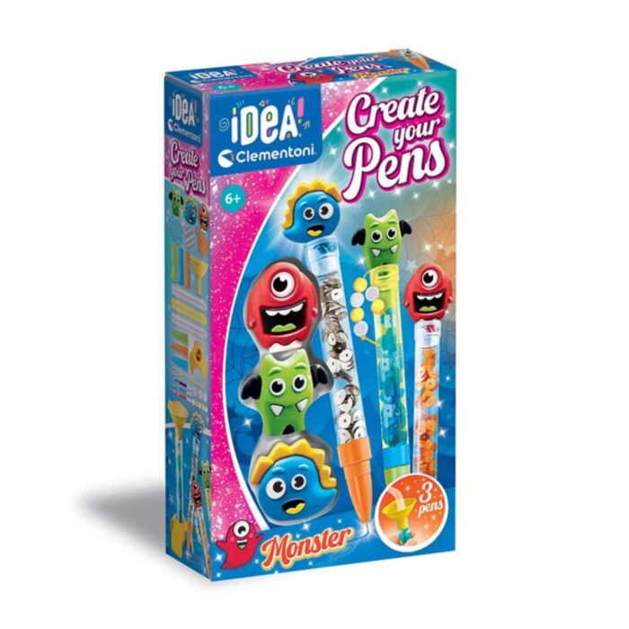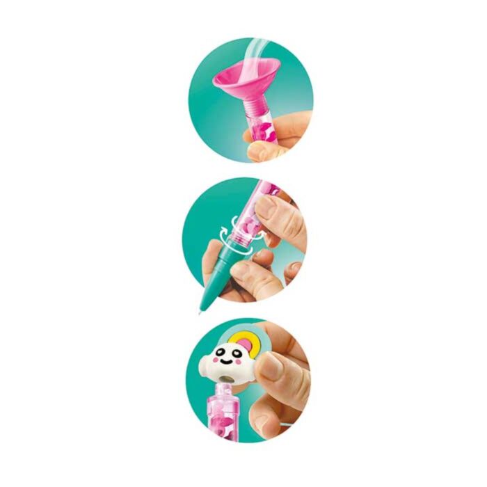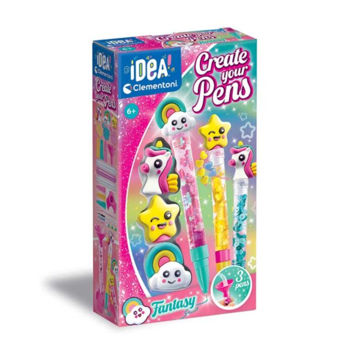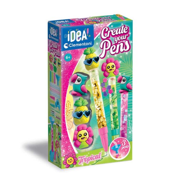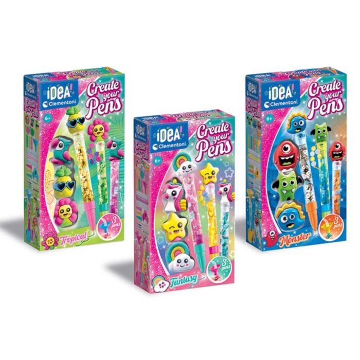 Ένα πρωτότυπο δημιουργικό σετ για να φτιάξετε τρία μοναδικά στυλό. Προσαρμόστε πάνω τους διαφορετικά διακοσμητικά και πολύχρωμες φιγούρες.