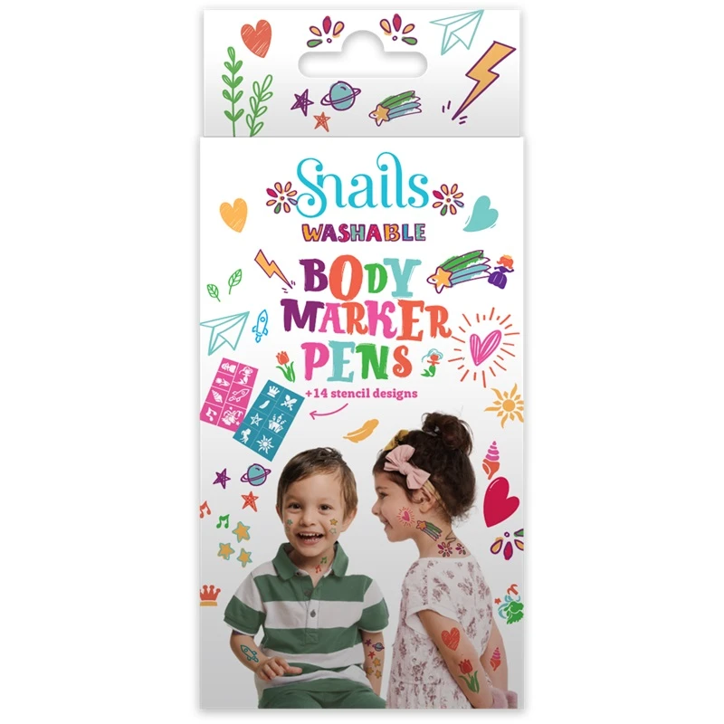 Διακόσμησε το σώμα με τους Snails Body Marker Pens. Ασφαλείς, μη τοξικοί μαρκαδόροι που ξεπλένονται εύκολα με νερό και σαπούνι.