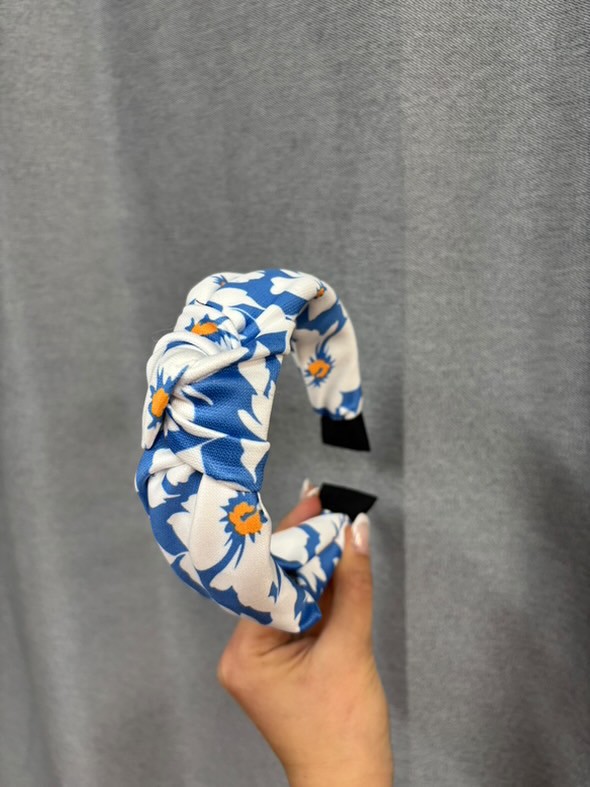 Η στέκα μαλλιών floral σε μπλε και λευκό χαρίζει ρομαντική και φρέσκια πινελιά σε κάθε εμφάνιση. Το σχέδιο με τα λουλούδια συνδυάζει θηλυκότητα και κομψότητα, ενώ ο κόμπος στο κέντρο προσθέτει stylish λεπτομέρεια.