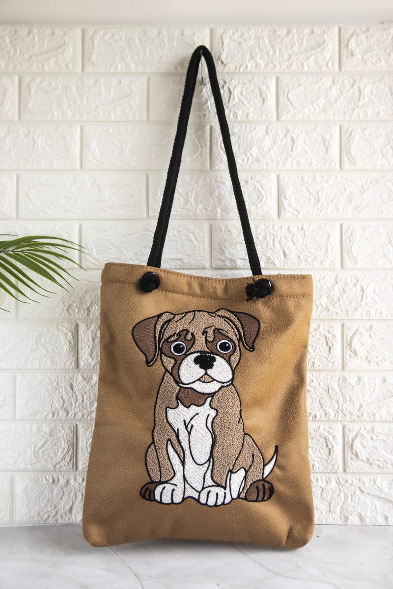 Τσάντα Ώμου από Οικολογικό Δέρμα με Κέντημα Σκυλάκι