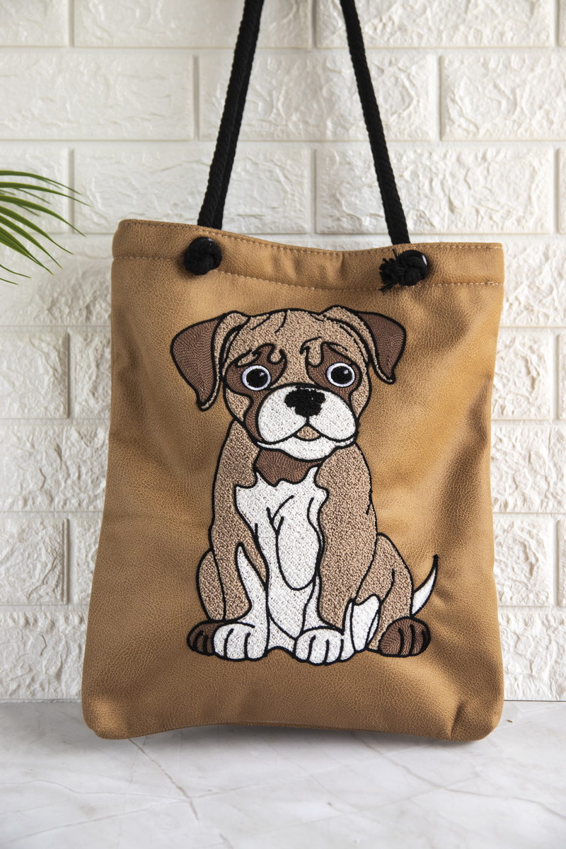 Δώσε ιδιαίτερο χαρακτήρα στο στυλ σου με την τσάντα ώμου από οικολογικό δέρμα με κεντημένο σκυλάκι. Ιδανική για καθημερινή χρήση.